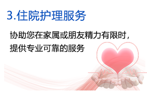 3. 住院护理服务,协助您在家属或朋友精力有限时,提供专业可靠的服务;