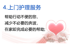 4. 上门护理服务,帮助行动不便的您,减少不必要的奔波,在家即完成必要的帮助;